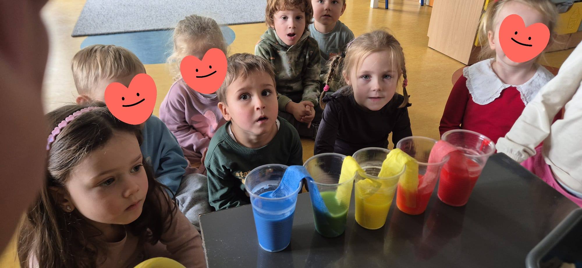 I na koniec naszego kreatywnego dnia poszukaliśmy odpowiedzi na pytanie: Czy kolory potrafią się bawić? Najpierw wykonaliśmy doświadczenie z…