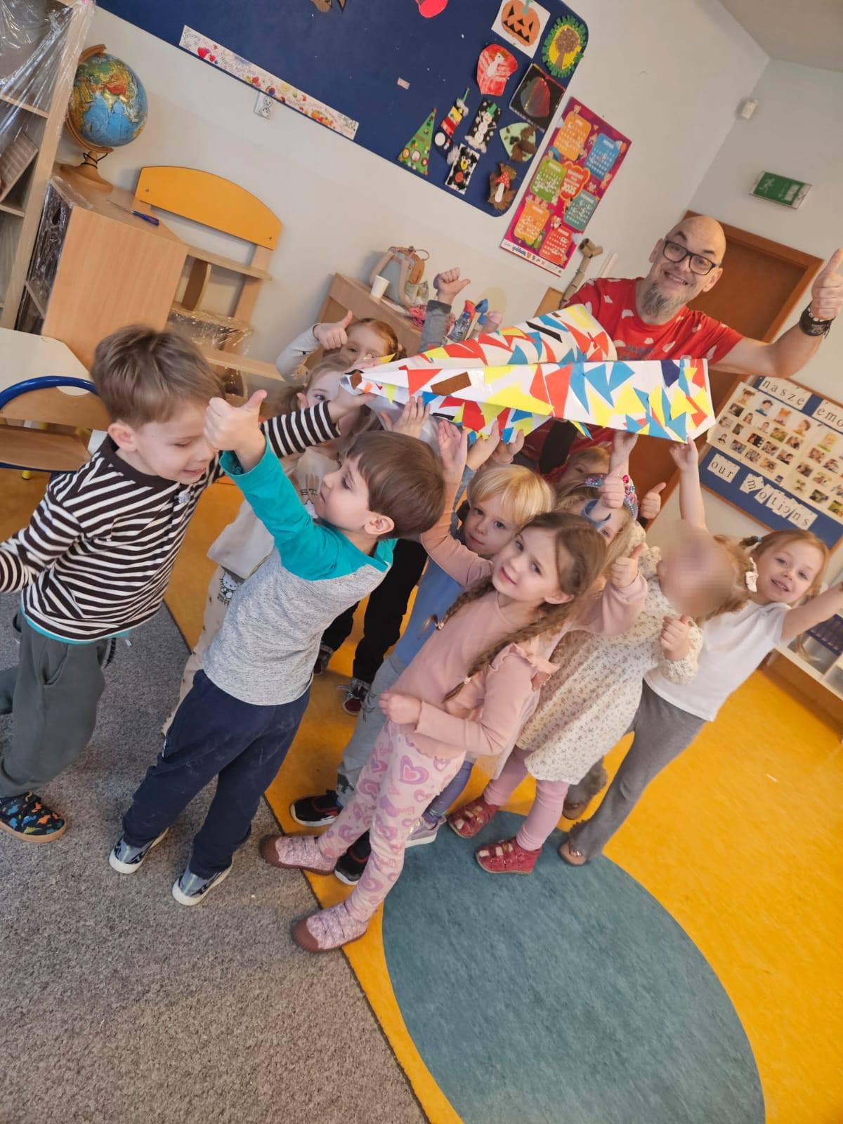 A Jeżyki ustanowił rekord Przedszkola w budowaniu samolotu z papieru. Nasz zajął prawie całą tablicę w szatni 🙂 …