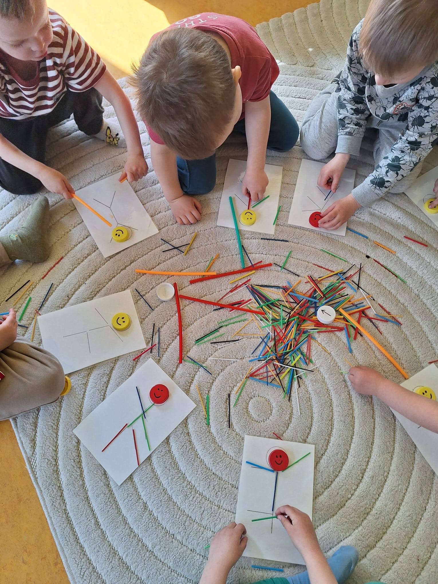 Zabawy matematyczne Misiów: przypominamy sobie figury geometryczne i uczymy się odzwierciedlać proste układy (patyczkowe ludziki) 🙂 ŚWIAT DZIECKA…