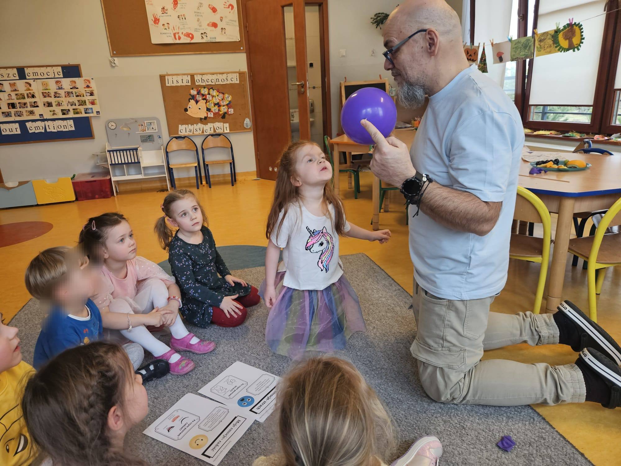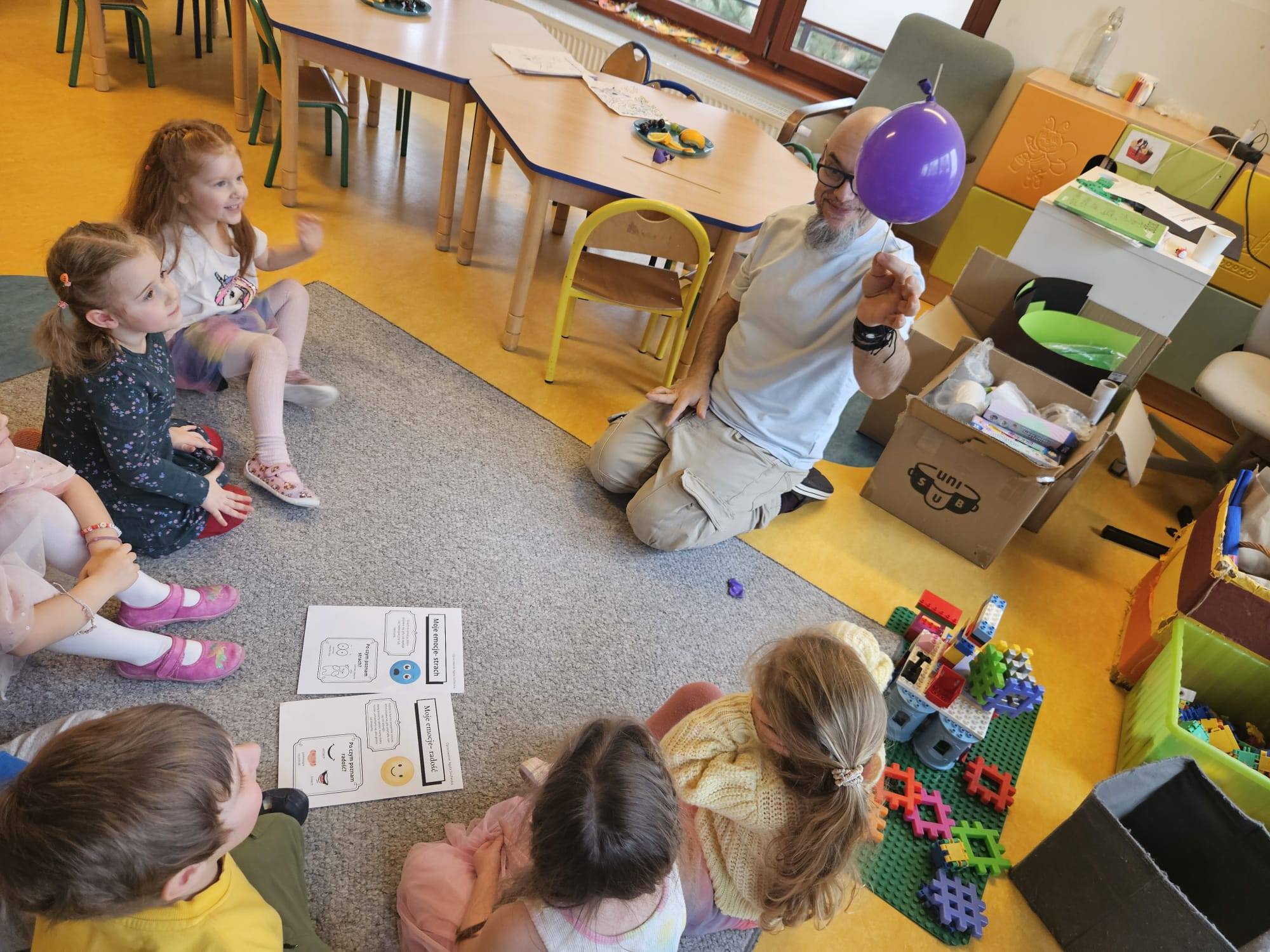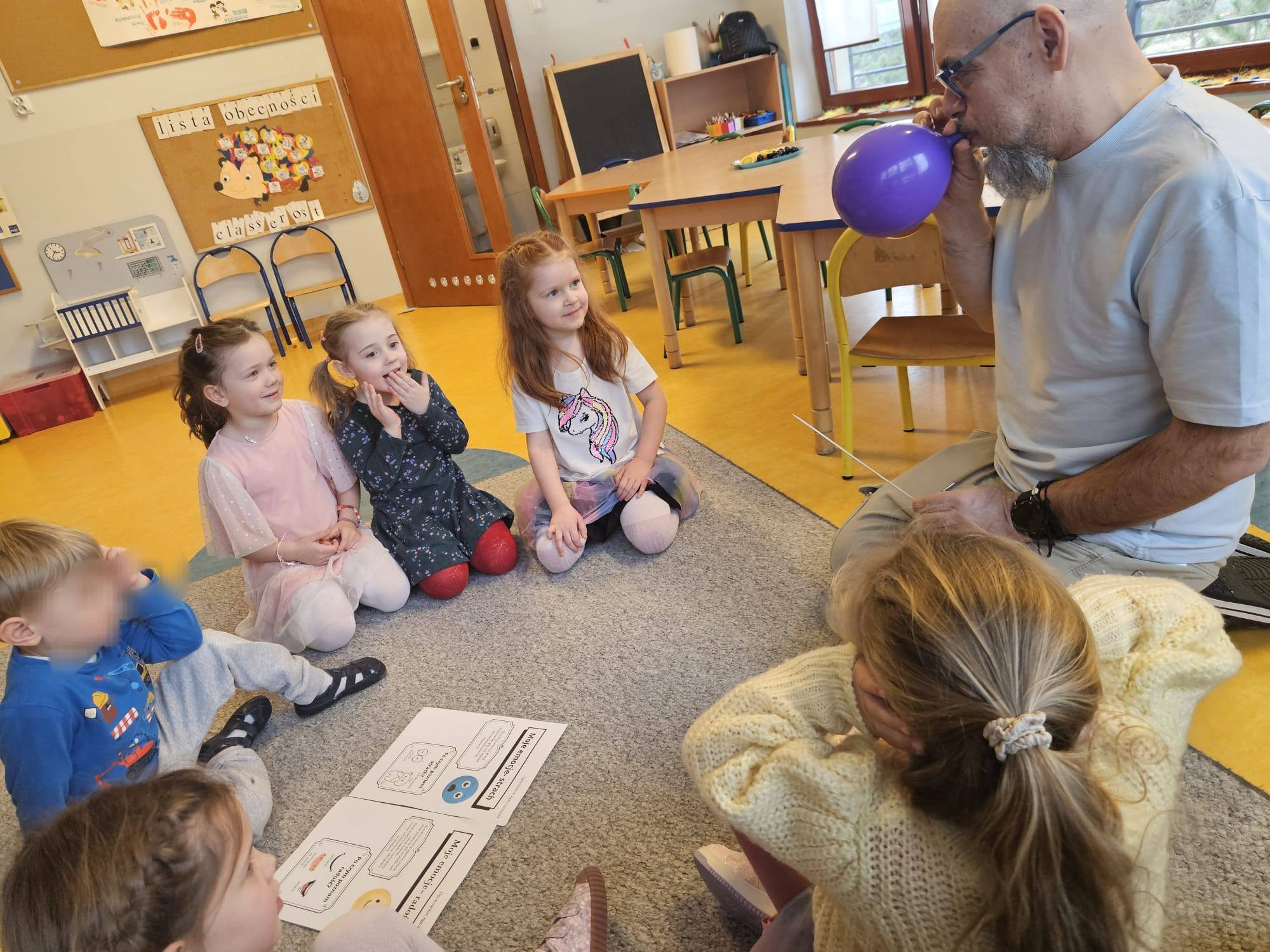 A tydzień eksperymentów zaczęliśmy od Jeżowego gadżetu czyli patyczka do szaszłyków, który do złudzenia przypomina kolec. Dzieci zobaczyły, że można przekłuć balonik i go nie przebić. Ale była zabawa 🙂 Szaszłyk z balona to prawie jak potrawa 🙂