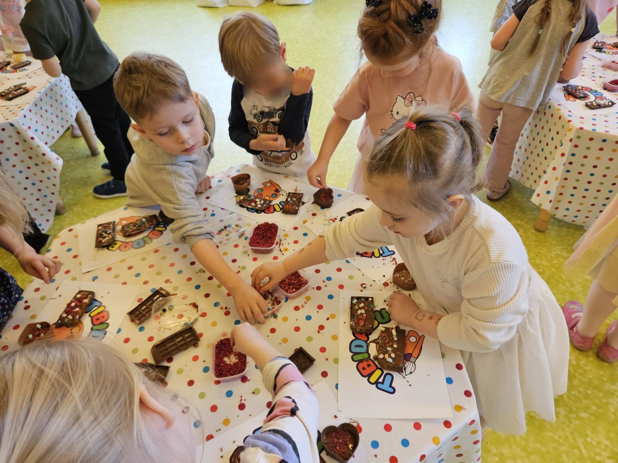 Dziś odbyły się warsztaty z okazji Dnia Cukiernika/Piekarza. Dzieci wykonały swoje własne czekoladowe wyroby 🙂