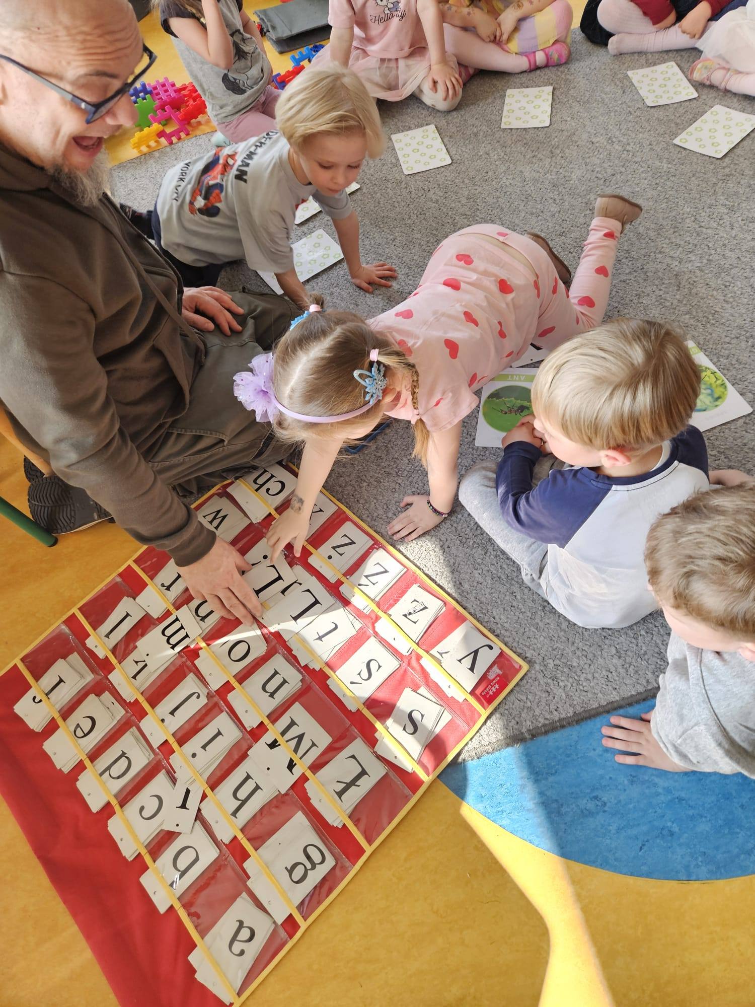 Dziś pierwsze zajęcia z literkami. Jeżyki powolutku zaczynają zagłębiać malowniczy świat alfabetu 🙂