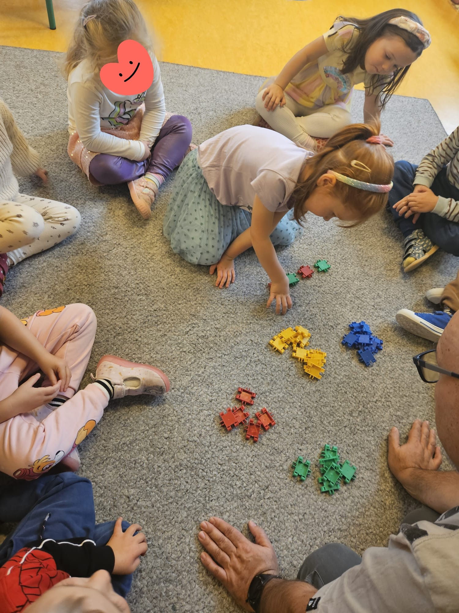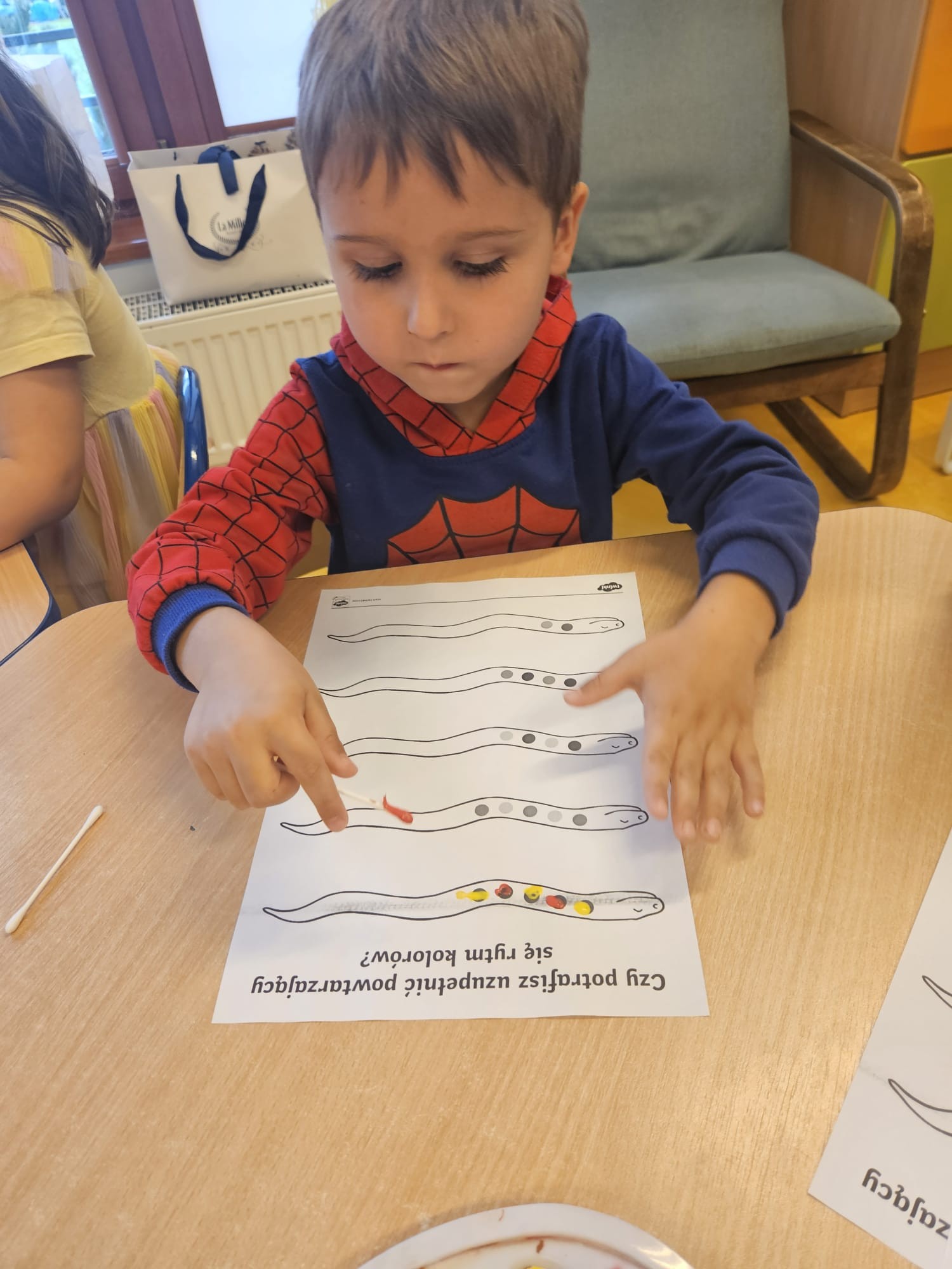 Podczas zajęć „Jeżyki” przekonały się że rytm nie tylko istnieje w muzyce ale także może być ustaloną kombinacją przedmiotów lub kolorów. Najpierw pracowaliśmy na klockach a potem zrobiliśmy wspólnie kartę pracy 🙂