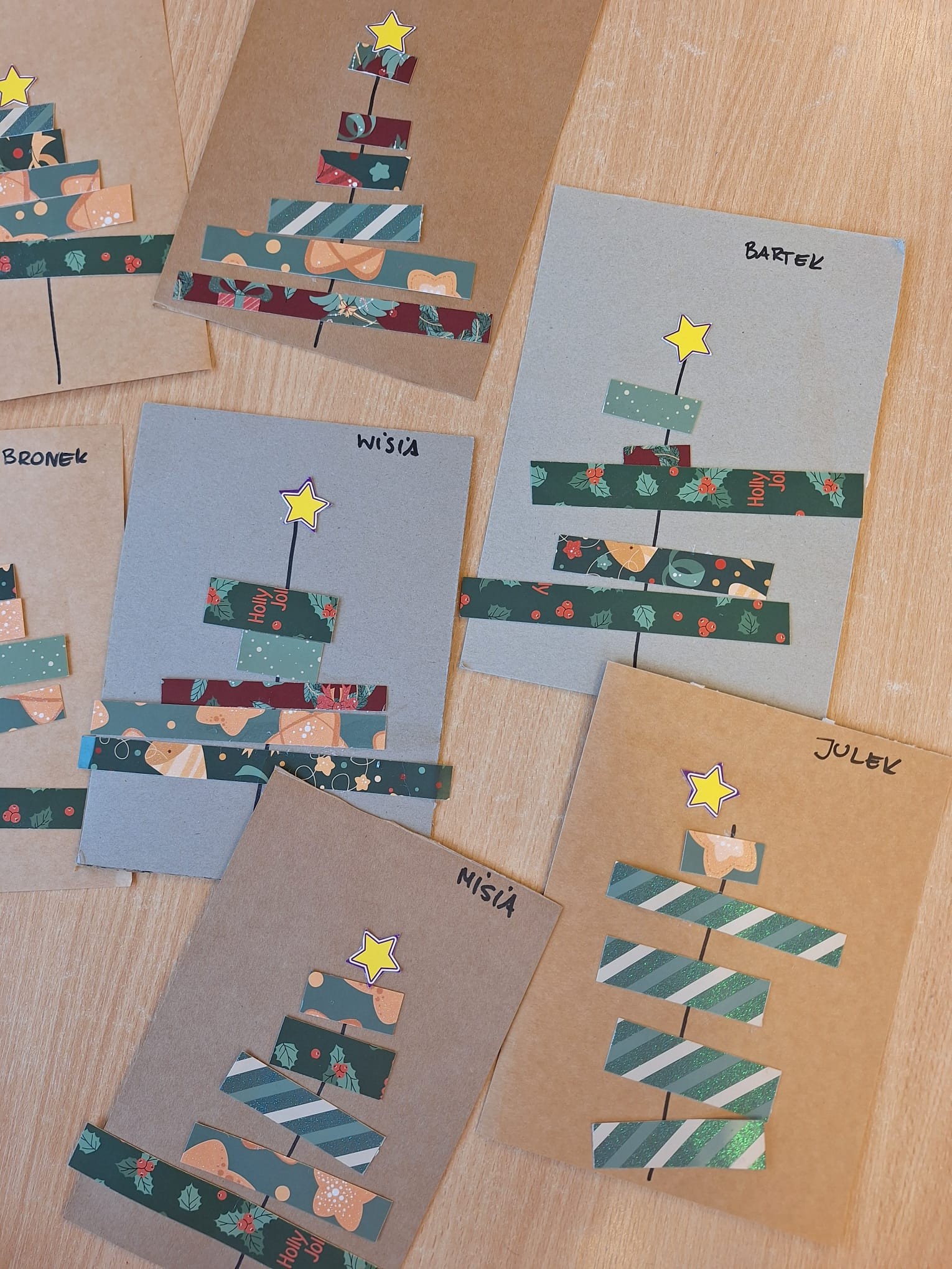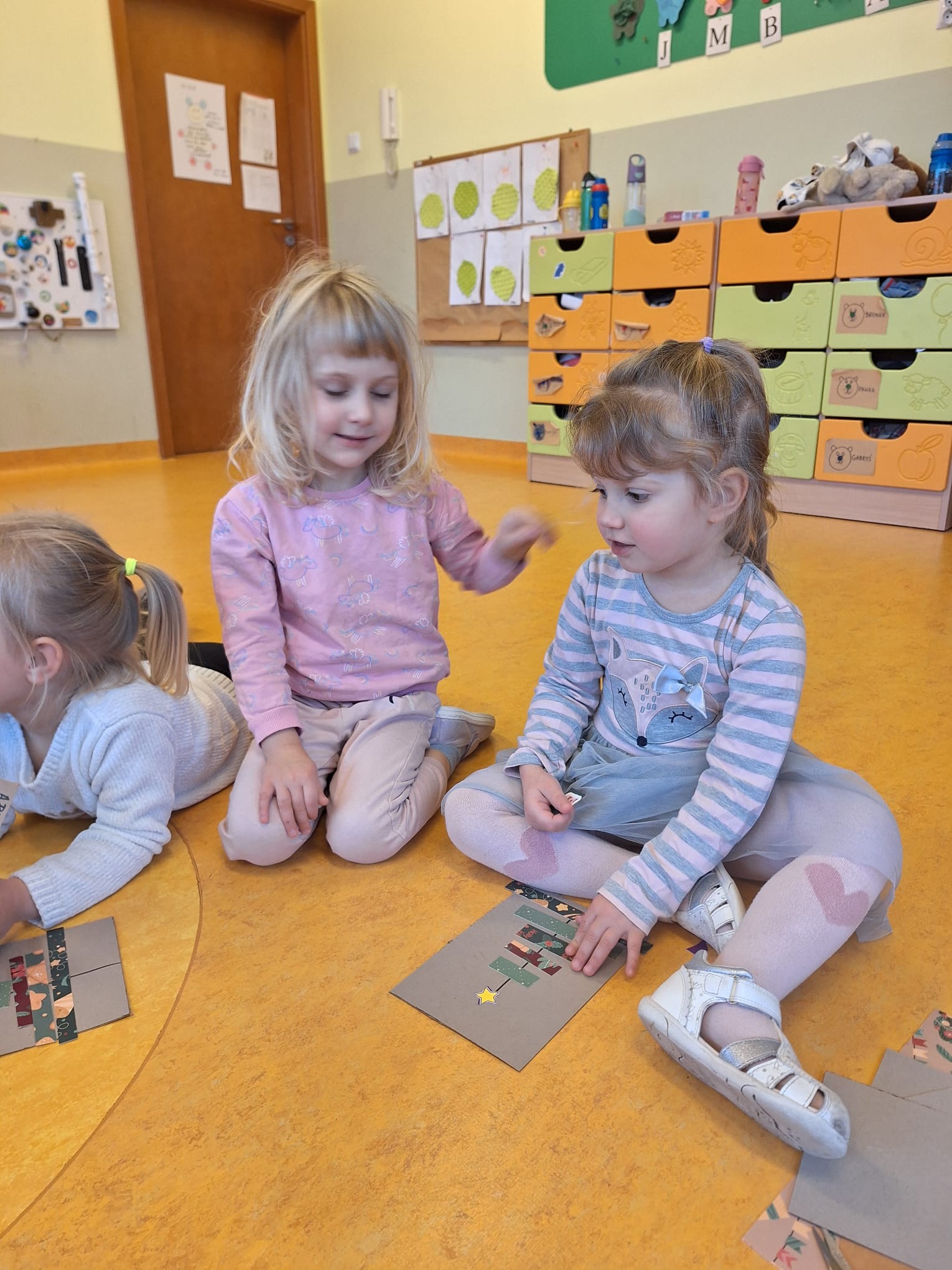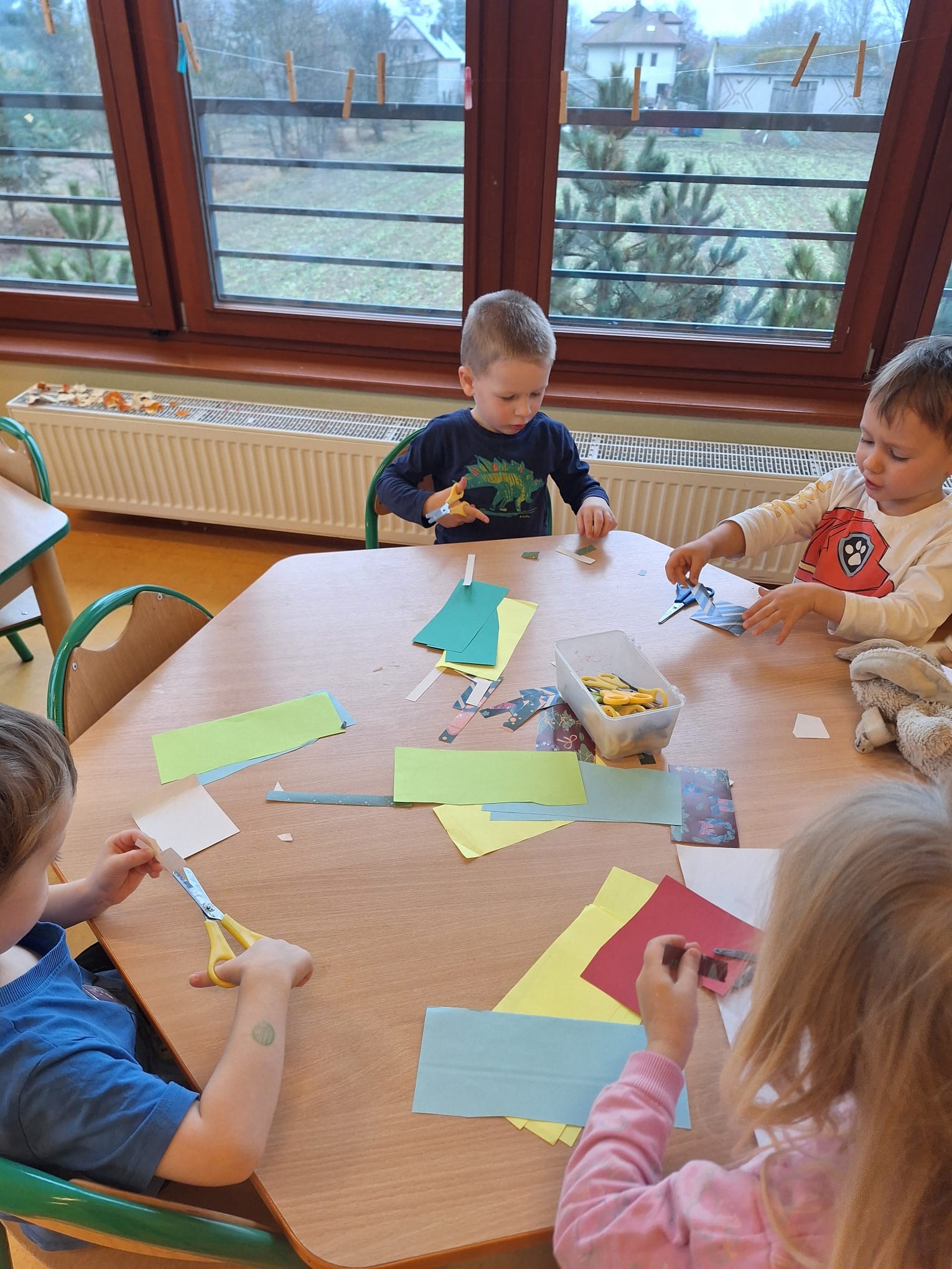 W sali Misiów pojawił się mikołajkowy kalendarz adwentowy. Codziennie będą na nas czekać świąteczne zadania. Dzisiaj zrobiliśmy kartki z choinkami, porównywaliśmy długości paseczków, szukaliśmy najkrótszych i najdłuższych z nich 🙂